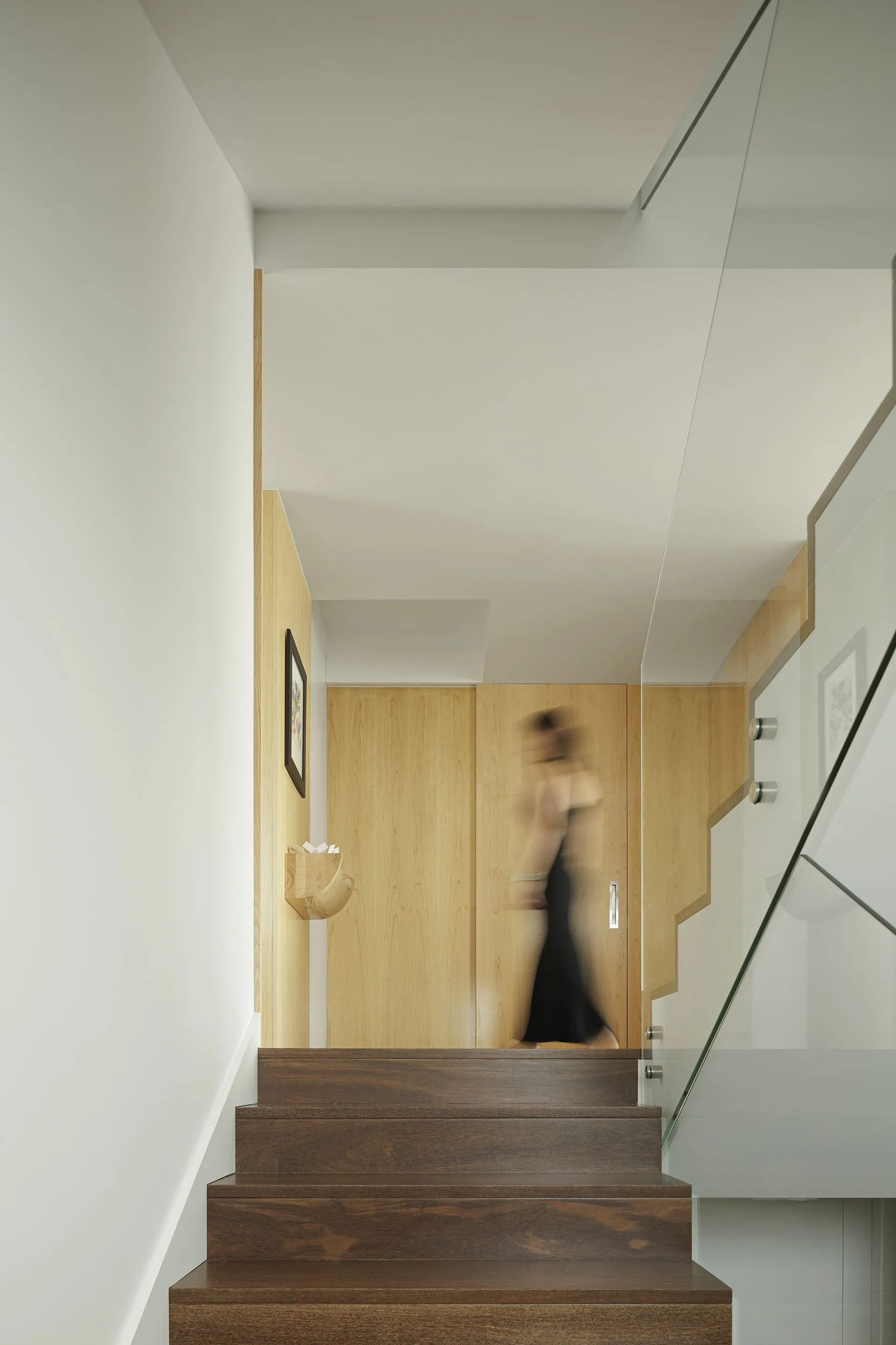 The house journeys around a set of stairs, from the basement to the top floor.